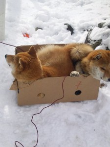 今日は寒くて寒くてブルブルの日、風もヒューヒュー、二人でねぐらをシエアーして、仲良しごっこしました。