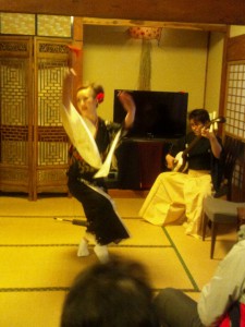 昨日、津軽三味線と津軽手踊りのライブがありました。人数は50人程度で2部制でしたから、広さ的にも丁度よく、マイクなど使わず全くの生演奏です。演者まで最前列は1㍍位です。津軽さんさがり、じょんがら、リンゴ節、更にはじょんがらの古い順からの聴き比べなど、大きな会場では決して聴けないライブとなりました。通常の公演は経費と会場を借りる時間などの関係もあり、弟子など多くの演者が2時間くらい演奏し、しかも当然ながらマイクでの演奏となります。今回は1回約20名前後と、津軽のライブハウスと同じような環境で演奏できて、奏者もびっくりしていました。お客様の中には感極まる人もいて、会場は拍手が鳴りやまないほどでした。また津軽手踊りは、ほとんどの人が見たことない踊りで、私も10年ぶりくらいです。もともと津軽から余り出たことがない芸能でそれそれは、体全体を使った激しい踊りです。