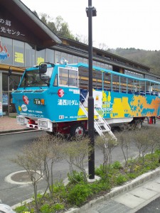 人気のある水陸両用バスの運行形態が7月から変わります。今までは、道の駅湯西川発着でしたが、7月からは発着場所が増えて、湯西川水の郷も発着場所となります。