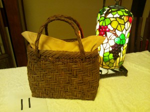 山ブドウ皮駒形手提げ(中)かぶせ布、
